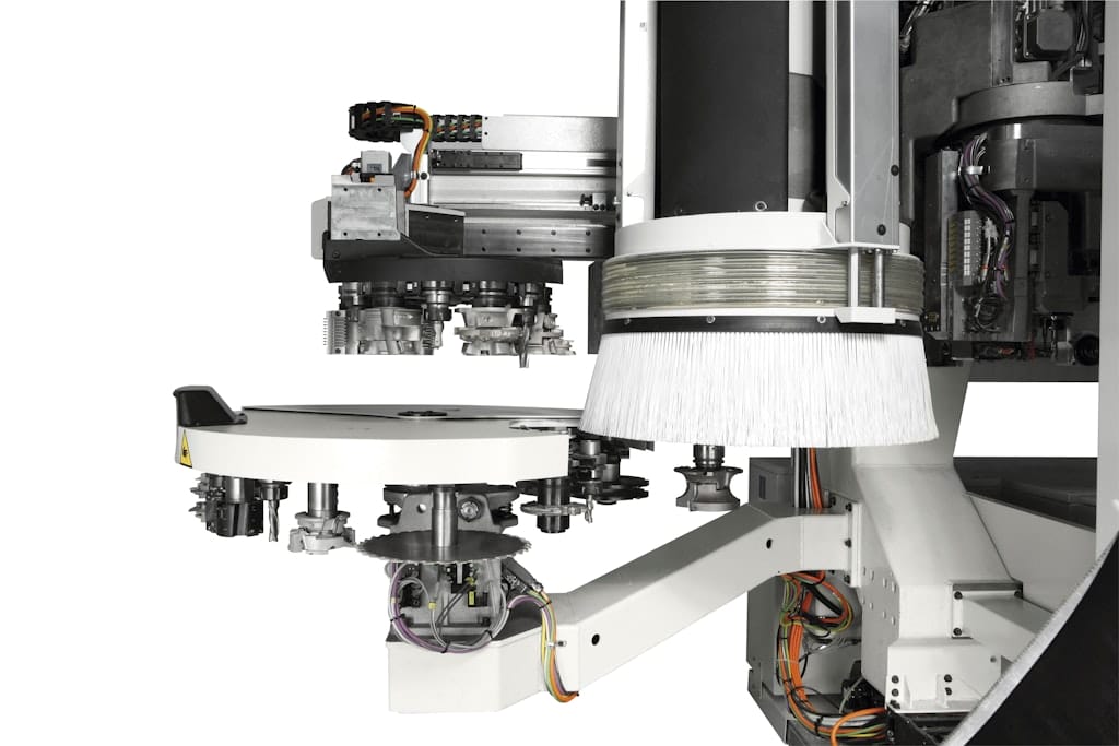 Capable of handling highly detailed and thick parts, the 5-axis unit enables intricate routing, drilling, and shaping without limitations.On-Board Tool Change