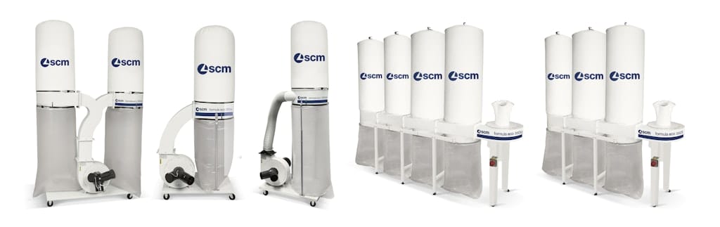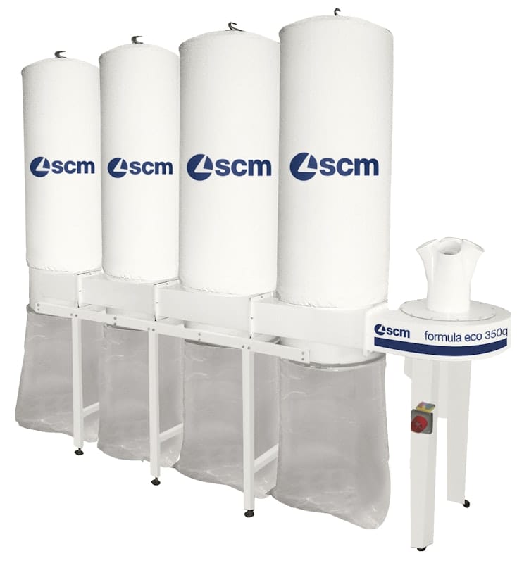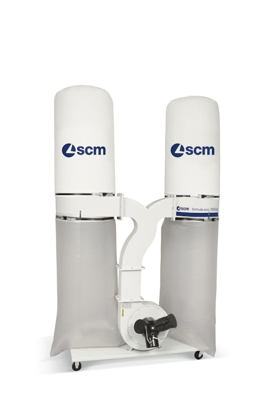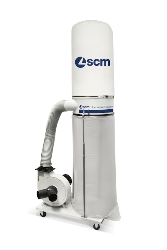 The SCM Formula Eco Dust Extractor is a compact, high-efficiency system designed for reliable dust and chip extraction. Its high-capacity fan and filter bag setup ensure consistent airflow and effective material separation. Built for continuous operation, it supports clean, safe and efficient workshop environments.