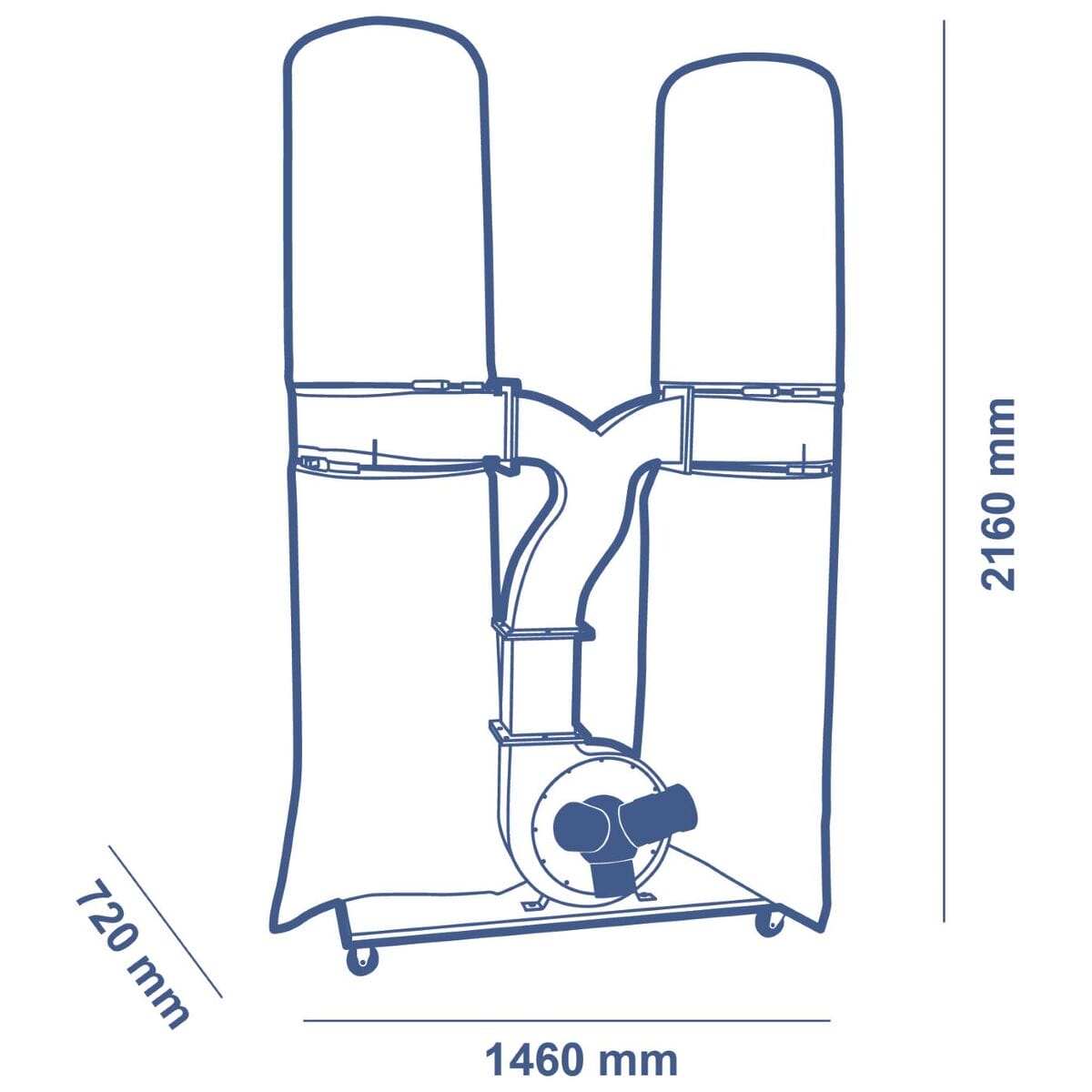 The SCM Formula Eco 300 D Double Bag Dust Extractor is an easy-to-use and powerful dust extractor that is perfect for your workshop. Featuring two outer filter bags, this dust extractor is the most economical solution for collecting dust and shavings. With an airflow rate of 3900 m³/h, this dust extractor will quickly and easily collect all the dust in your workshop. The twin bag design allows for easy collection and disposal of the collected dust. This dust extractor also features a three-phase motor for 50 Hz 2.2kW 3hp / 60 Hz 2.2kW 3hp power.