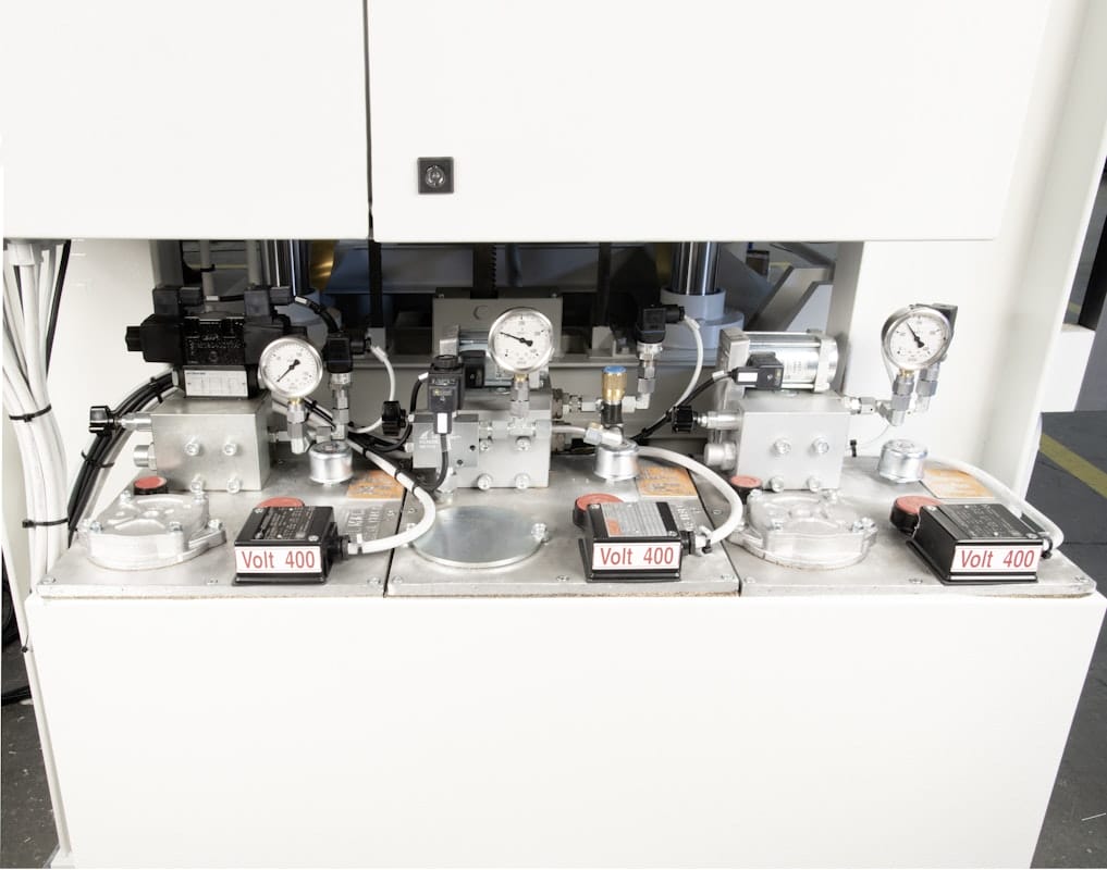 | Model | Platen dimension (mm) | Vertical thrust (ton) | Side thrust (ton) | Pressure bar (ton) |