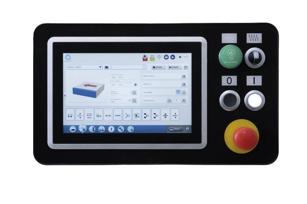 The Olimpic 300 offers diverse capabilities, including 45° chamfering, NO EDGE machining, and different finishes on the top and bottom of the same panel. This makes it a highly flexible solution for a wide range of edge banding tasks, allowing for varied and customized results.Smart Control