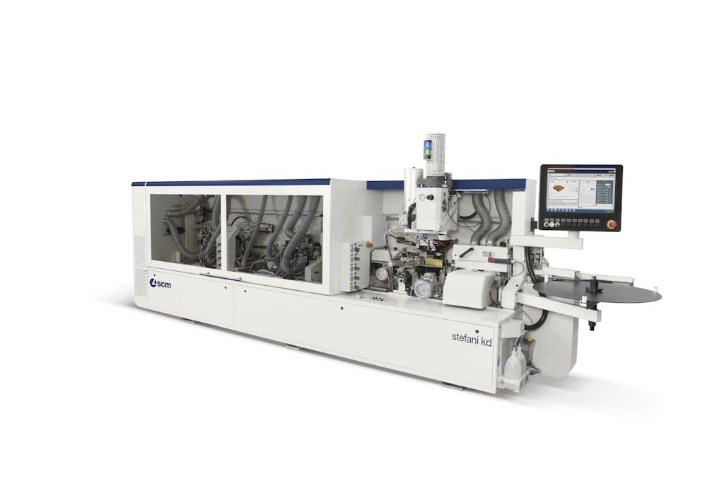 The Stefani KD is a versatile edgebander ideal for small and large batch production, delivering precise, high-quality results. It handles solid wood edges up to 12 mm thick and supports two radii with fast, error-free setup. The SGP glue pot ensures perfect EVA or PUR glue lines, while the polyurethane pressure belt protects delicate surfaces during processing.