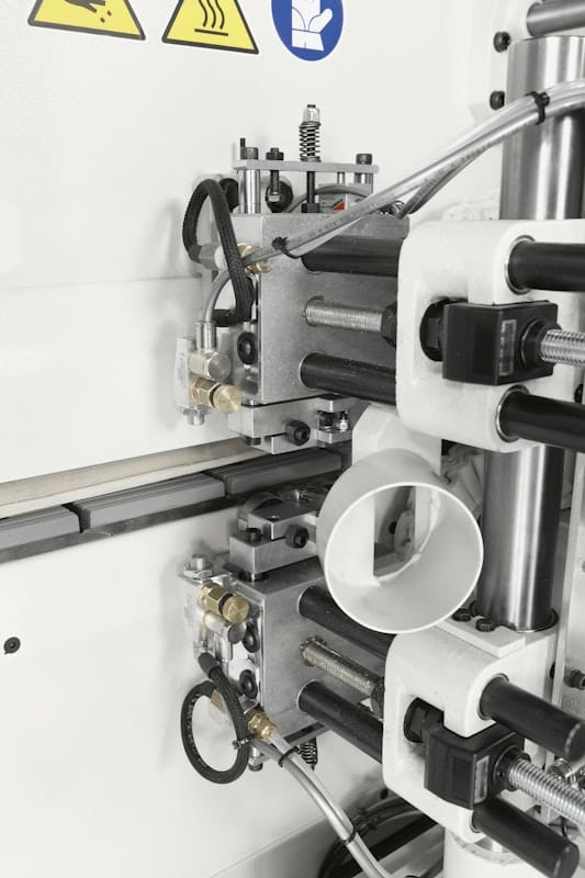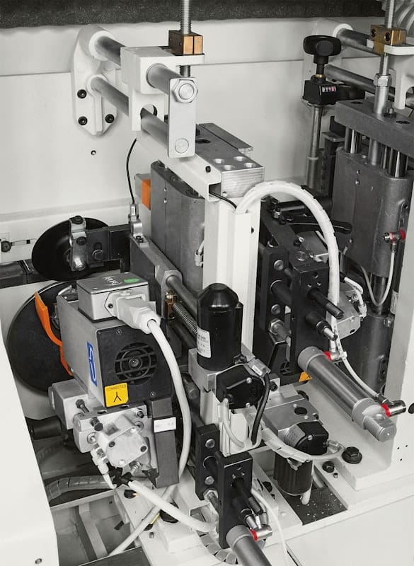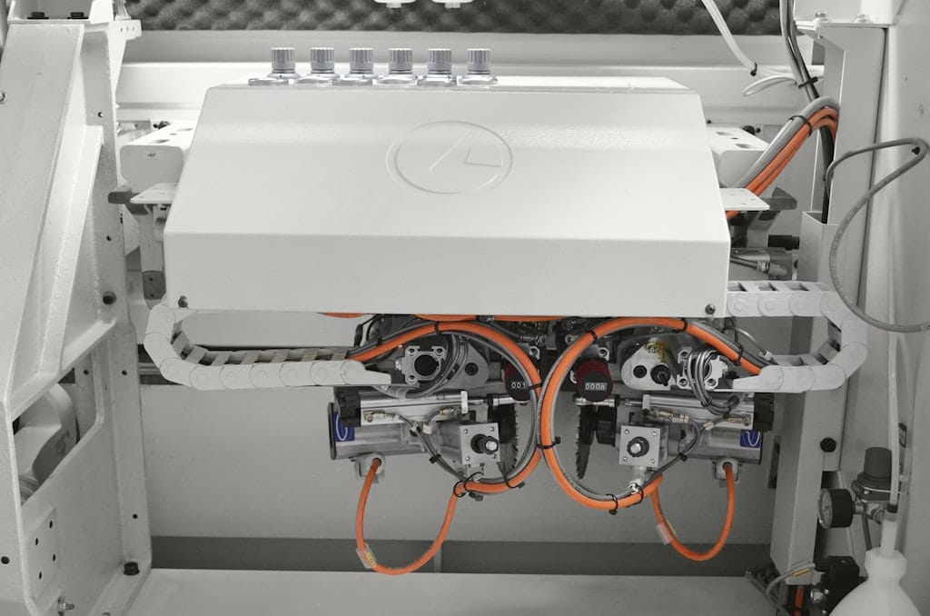 The Stefani MD provides exceptional flexibility with two pre-melting units: one for Polyurethane glue (PU BOX L) and another for EVA glue. This enables top-quality gluing for both glue types, making the machine adaptable to a variety of materials and edge requirements.Automatic Multi-Edge Operating Units
