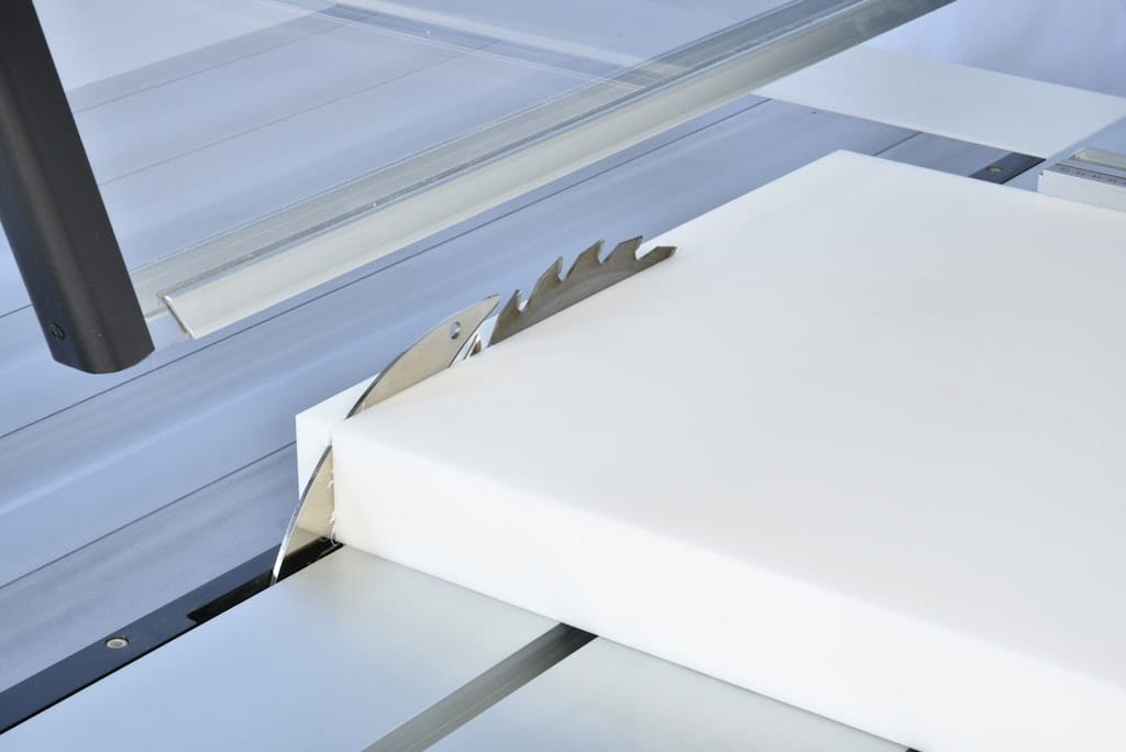 - Sliding Table System: Equipped with a 1600mm sliding table for effortless handling of large panels and smooth, precise cuts.