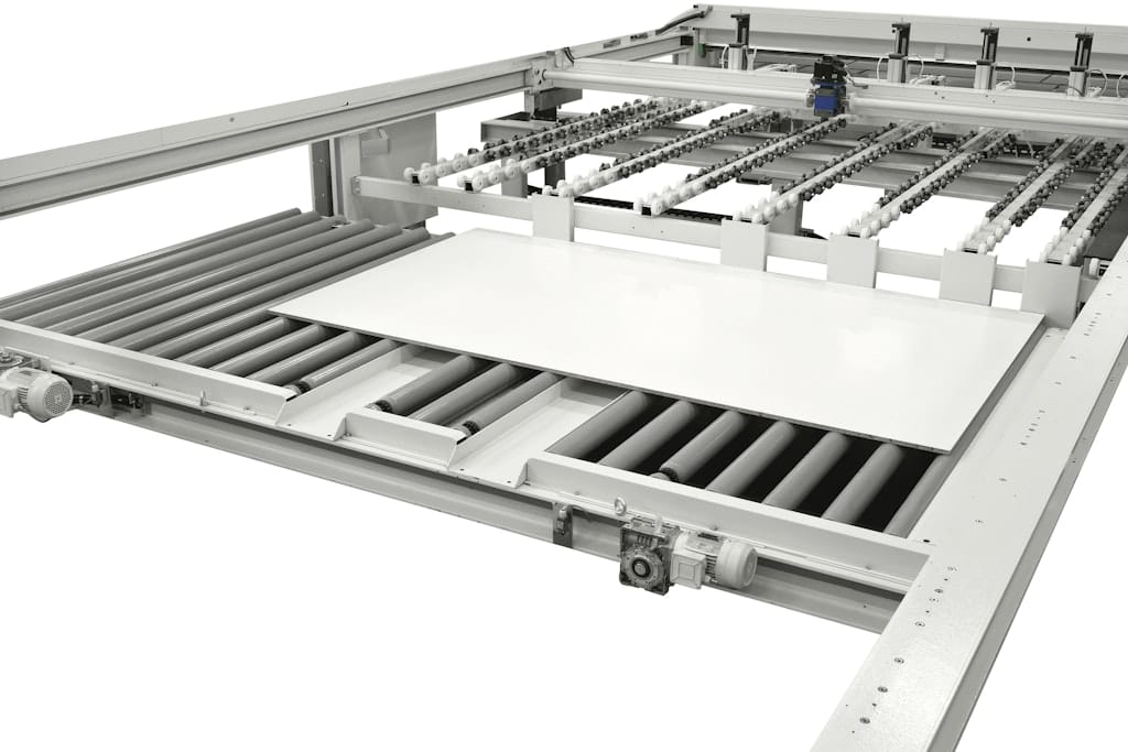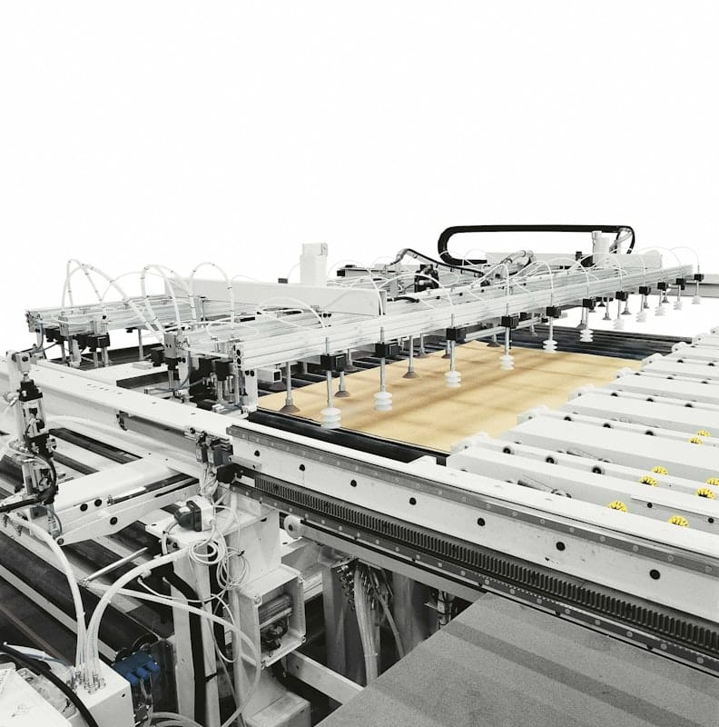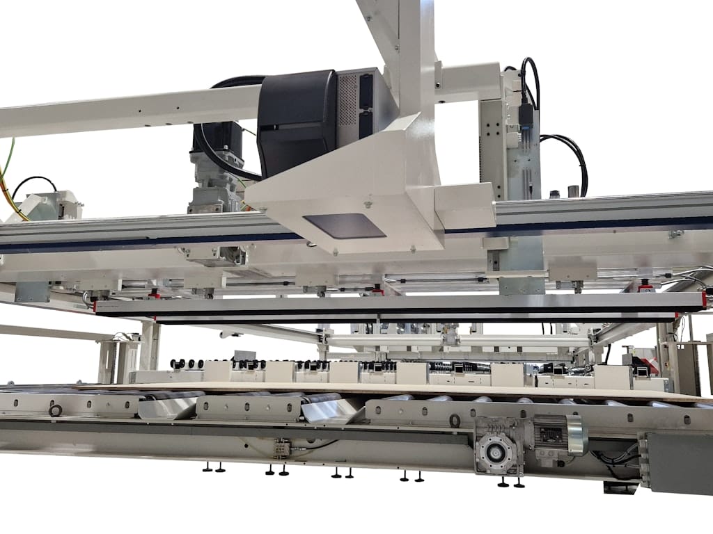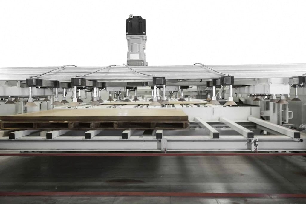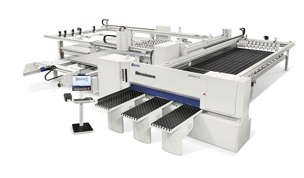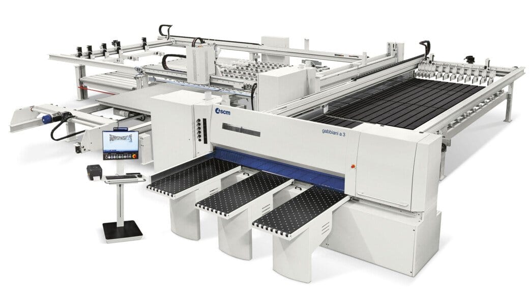 The Gabbiani A3 is a high-speed angular panel saw for medium to large companies, combining advanced automation with a vacuum cup system for delicate panel handling. Its powerful 37 kW saw carriage, high feed speeds, and precise prismatic guides ensure fast, accurate, and maintenance-free cutting. Fully integrated loading/unloading and customizable options maximize efficiency, flexibility, and production monitoring.