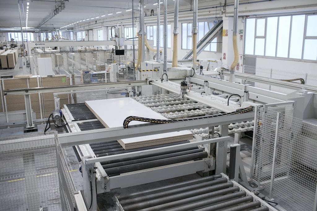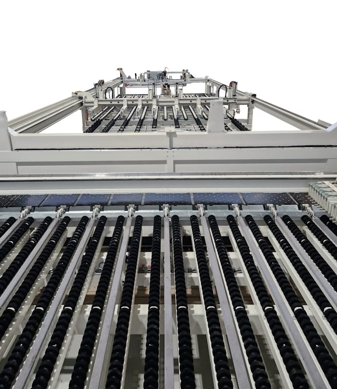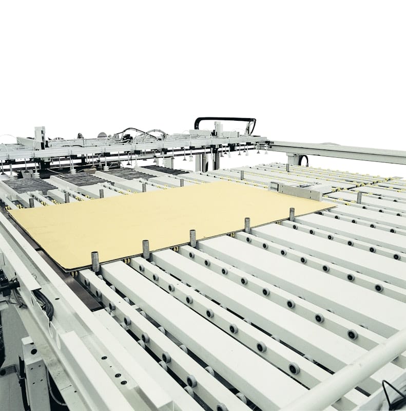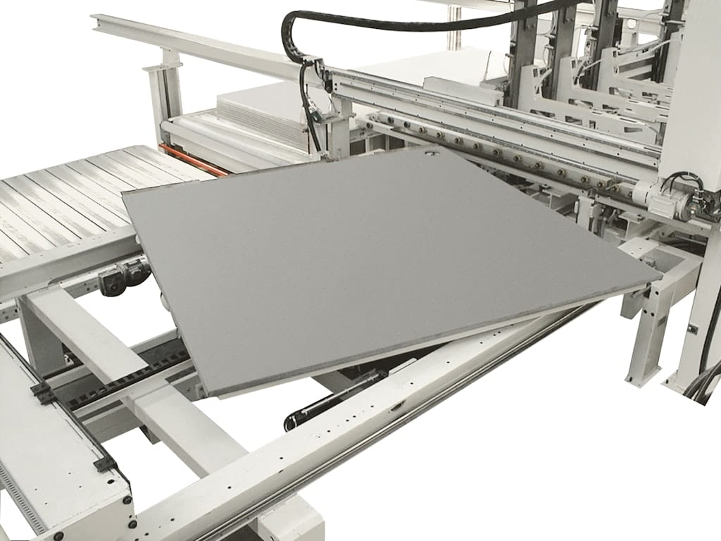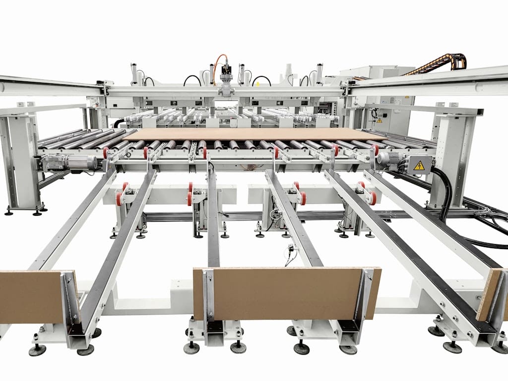 The Gabbiani A3 is a high-speed angular panel saw for medium to large companies, combining advanced automation with a vacuum cup system for delicate panel handling. Its powerful 37 kW saw carriage, high feed speeds, and precise prismatic guides ensure fast, accurate, and maintenance-free cutting. Fully integrated loading/unloading and customizable options maximize efficiency, flexibility, and production monitoring.