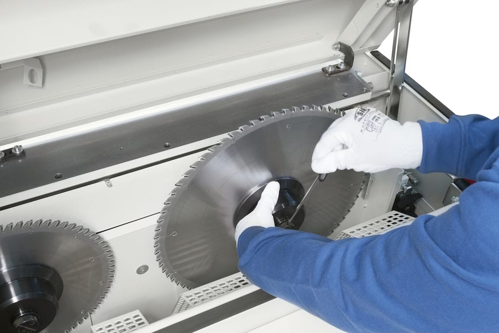 Advanced Technology and Precision The prismatic guides with recirculating ball bearings ensure that the saw carriage and vertical blade movements are precise, reliable, and maintenance-free. The design ensures high cutting precision, maximum reliability, and high resistance to mechanical stress, with the added benefit of centralised, control-monitored lubrication for minimal upkeep.