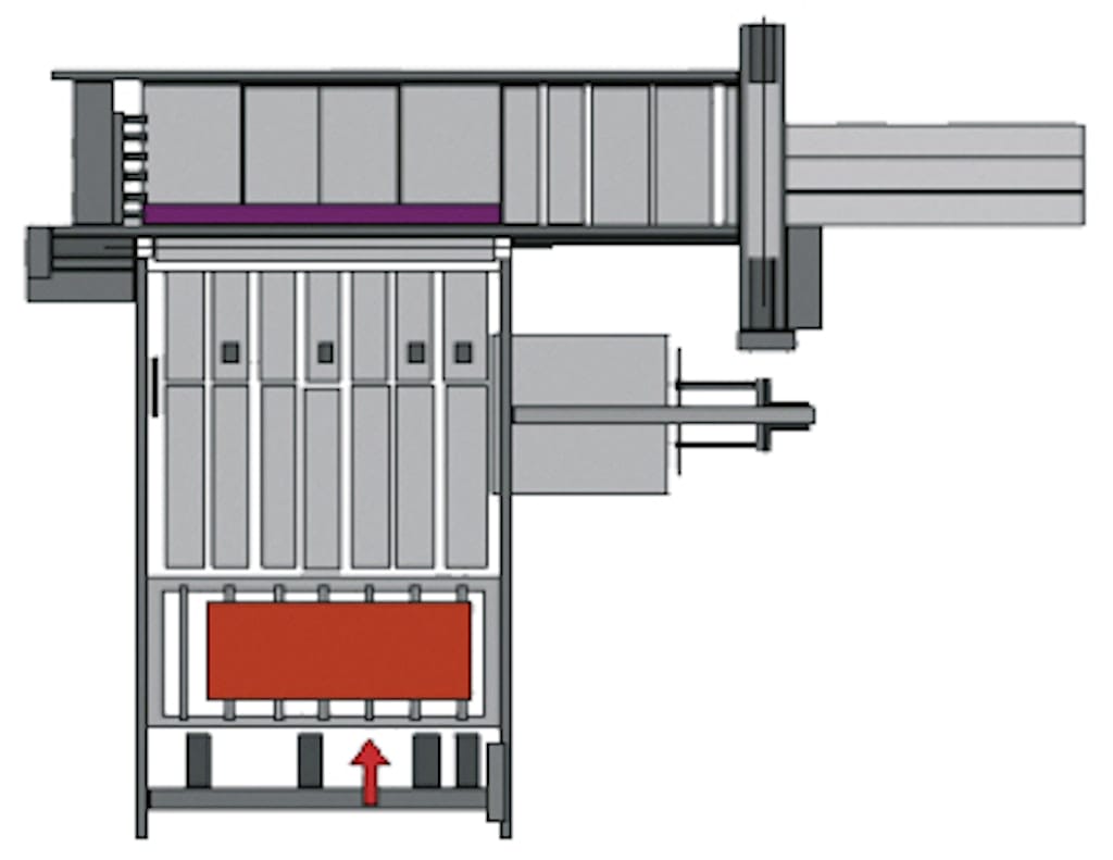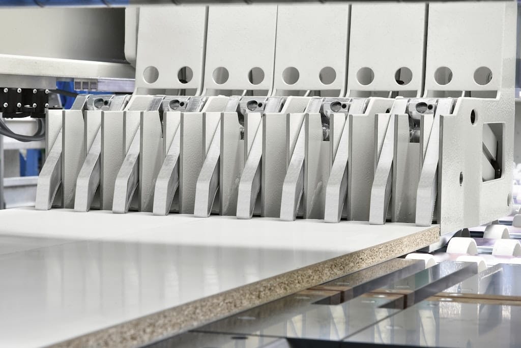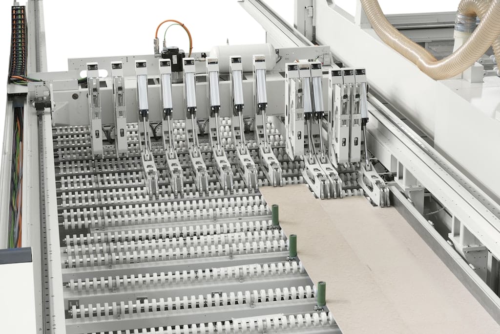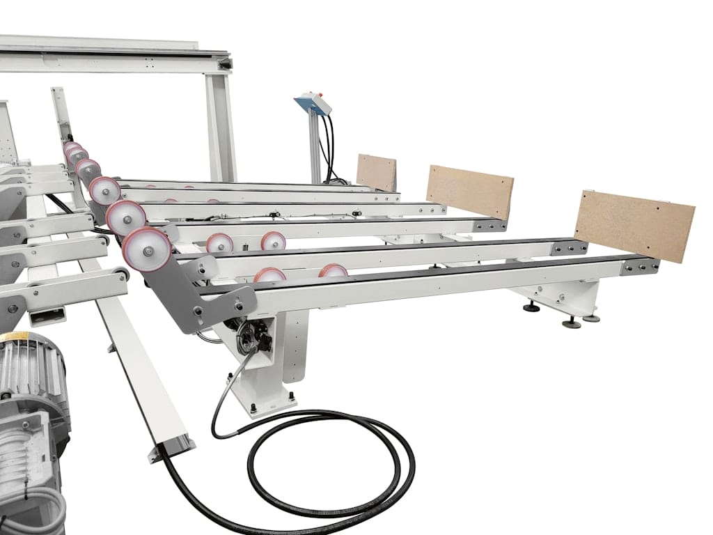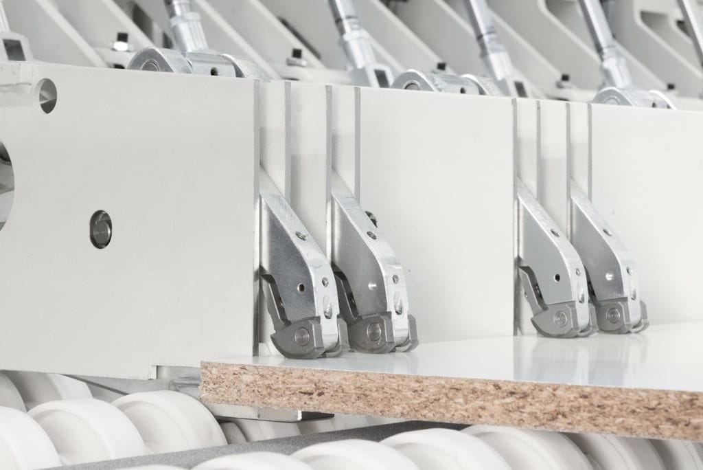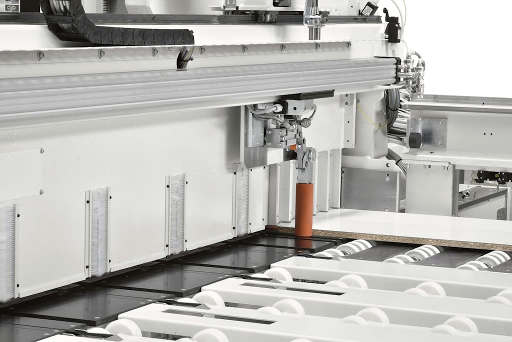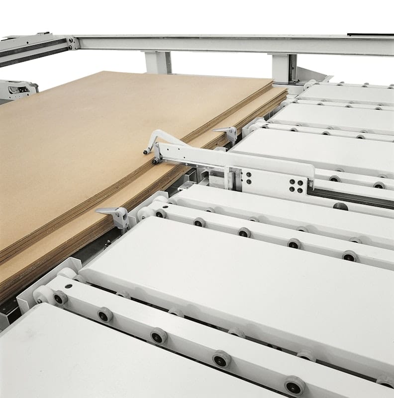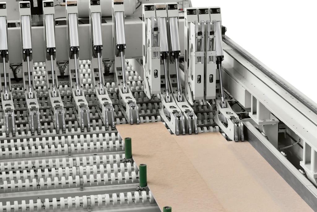 High-Speed Production Achieve maximum production levels with high feed speeds of up to 170 m/min on the carriages and 120 m/min on the pusher beam. Additionally, the machine is equipped with a high-power saw carriage (up to 37 kW), ensuring that large volumes of material can be processed quickly and accurately, making it ideal for large-scale operations.
