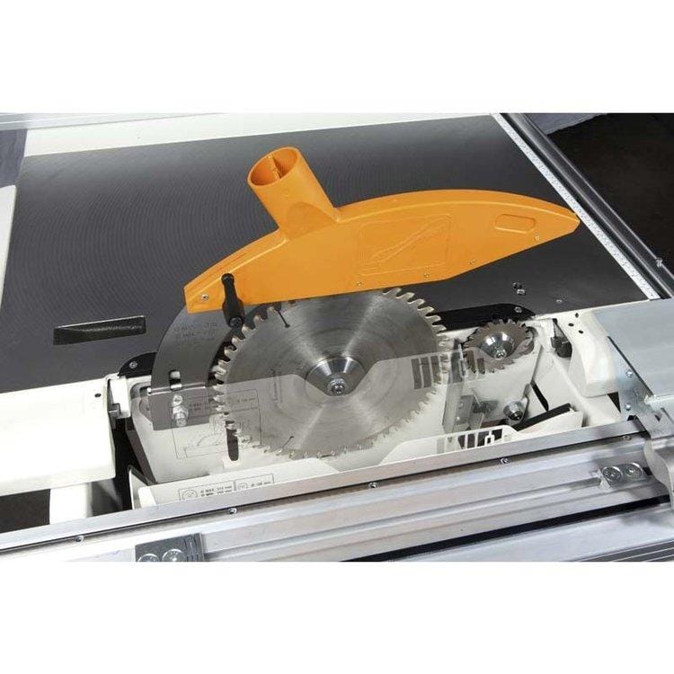 The operating process is greatly enhanced thanks to the anodized aluminium sliding table which slides on high precision, steel guideways. The sliding table offers the high standard of SCM durability whilst having great impacts on both the machining and operating process.
