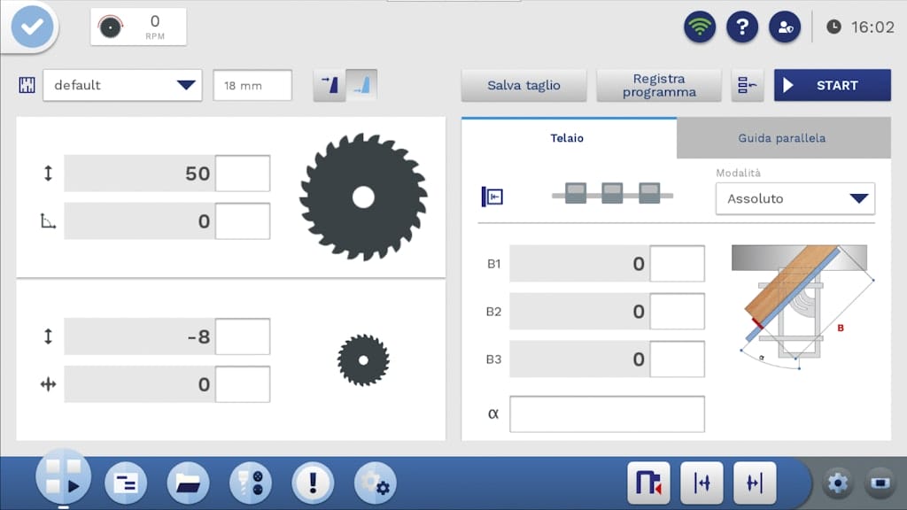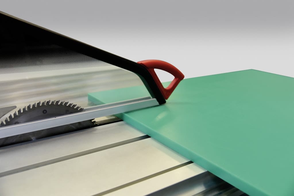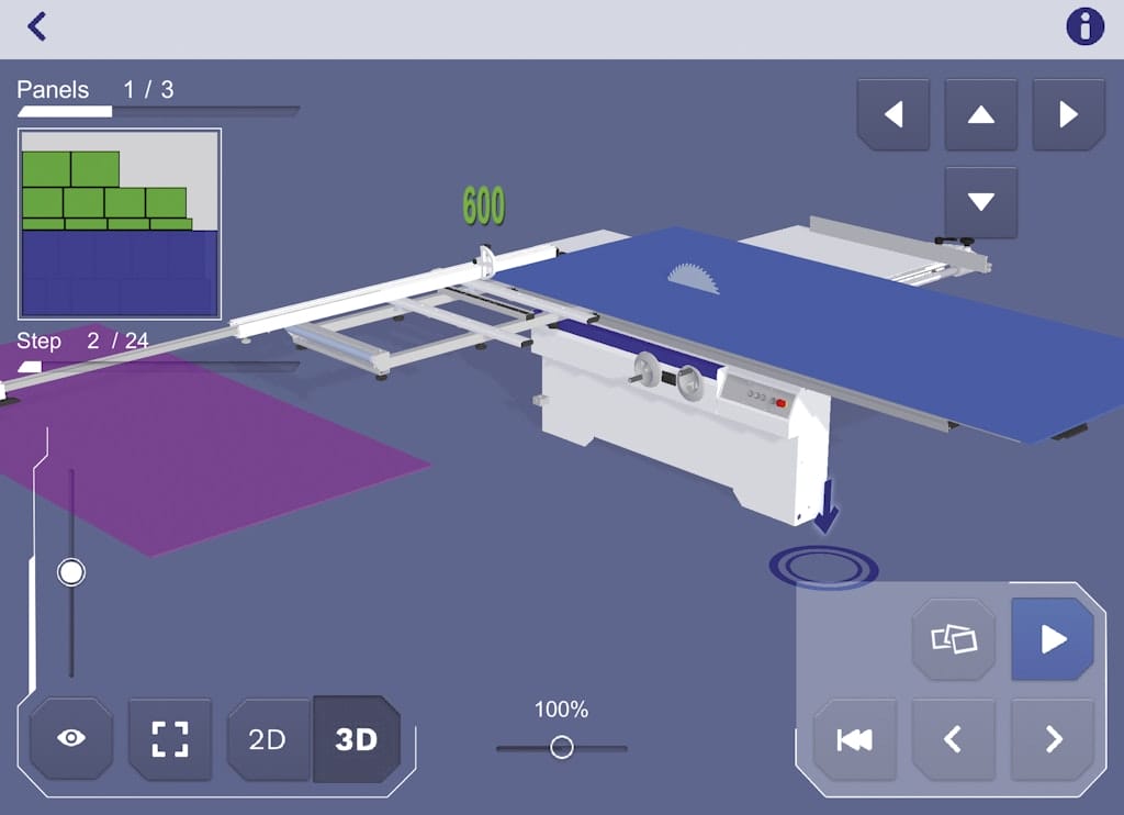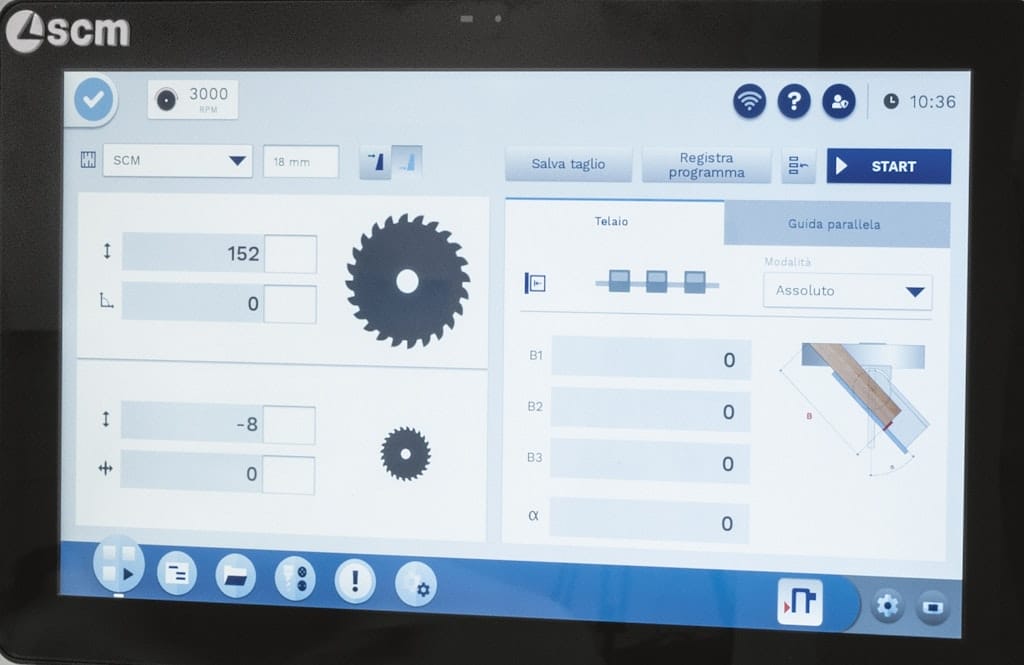 • Programmed rip fence with ball screw positioning
