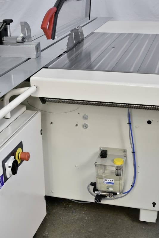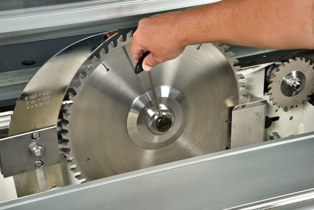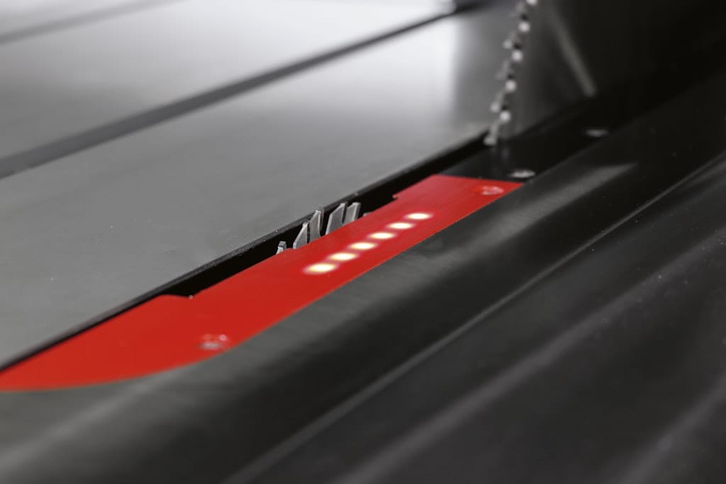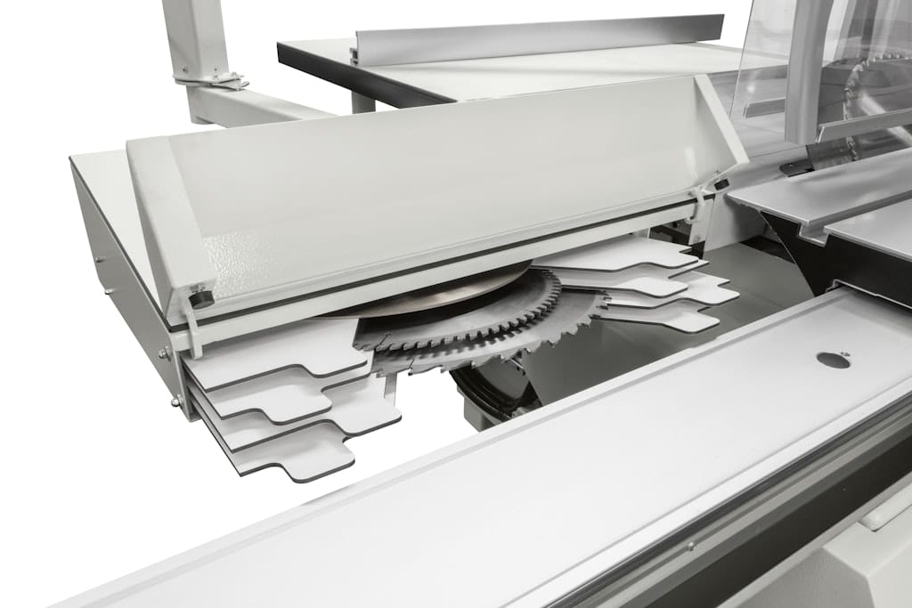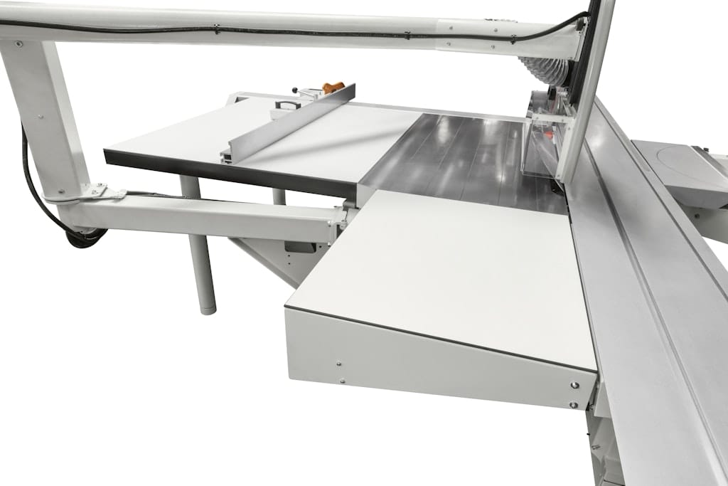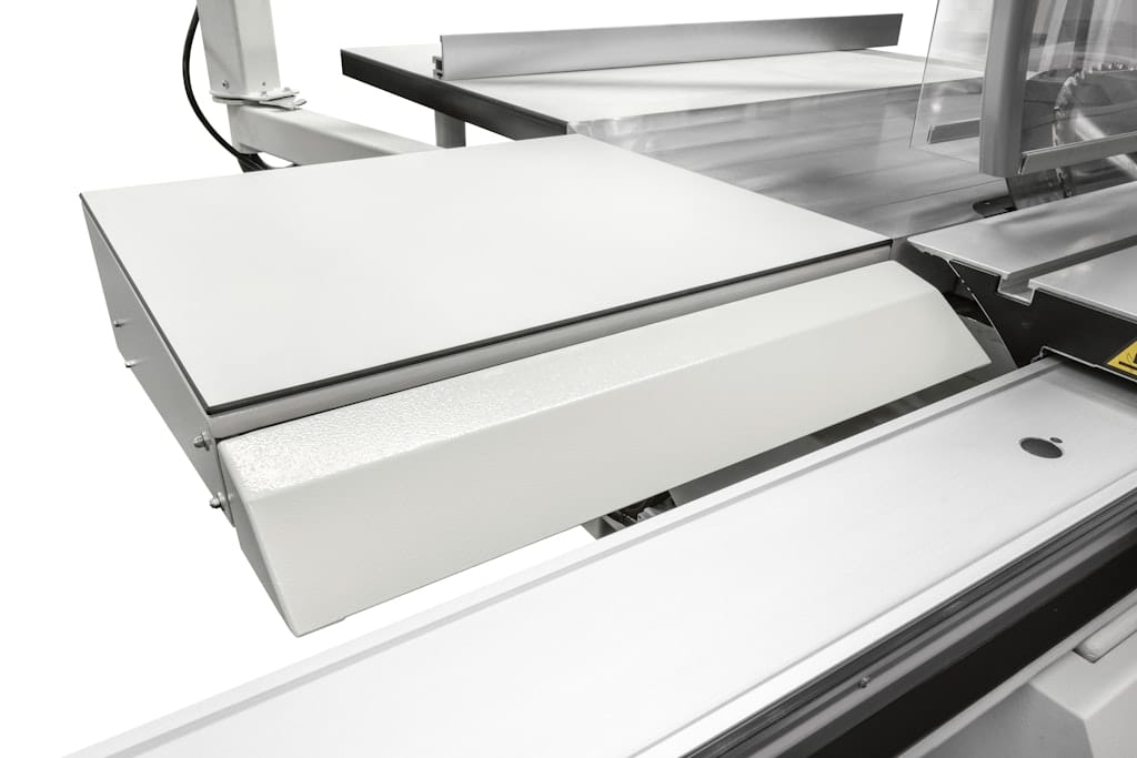 Enjoy quick and accurate positioning of the rip fence, designed for efficiency. With a recirculating ball screw mechanism and sliding on a linear guide, the fence ensures precision. It can also be easily excluded from the working area when not in use, making it adaptable to various tasks.Sliding Carriage