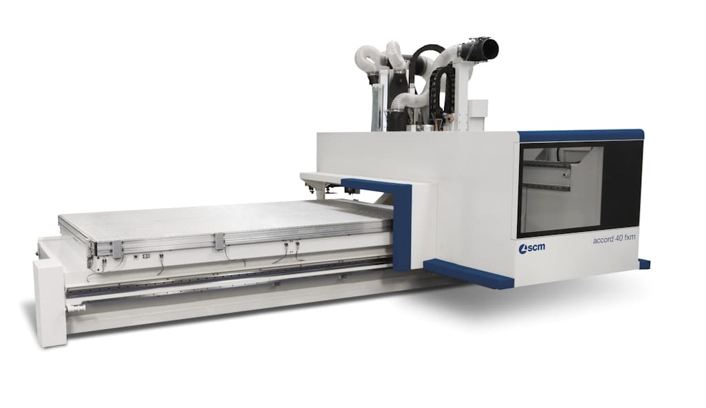 The SCM Accord 40 FXM is a high-performance CNC machining centre with a mobile gantry structure, designed for manufacturers who need precision, speed, and flexibility in processing complex wood components. It’s ideal for solid wood, plywood, MDF, and chipboard, offering consistent quality across a wide range of applications.