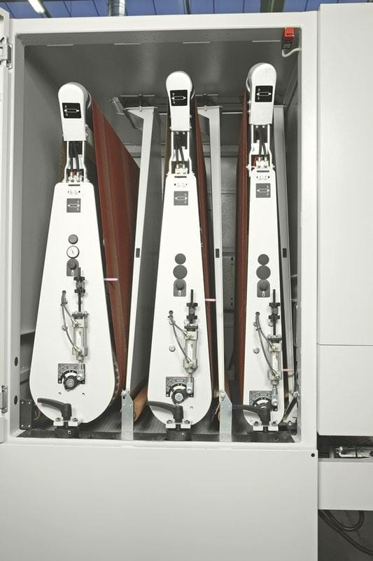 Led indicator for panel introduction. Simple and intuitive, communicating to the operator where and when the panel has to be introduced into the machine and optimising the standard wear of the sanding belt; ensures a better quality finish and reduced machine costs.