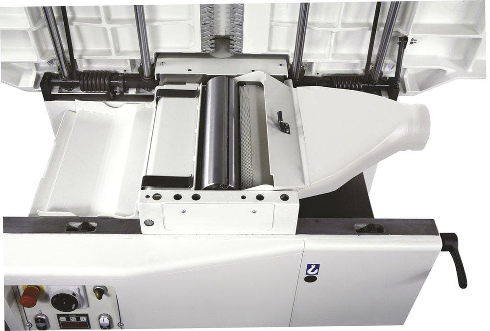 The 95mm diameter cutter block and 4 knives provide for excellent planing with a minimal amount of effort. The pressure of the thicknesser feed rollers can be adjusted to accommodate the type of being processed – leaving you with a flawless finish. The roller infeed has a helicoidal profile to ensure firm, constant workpiece feed whilst the outfeed roller (in sandblasted steel) sustains the perfect post-processing finishing.